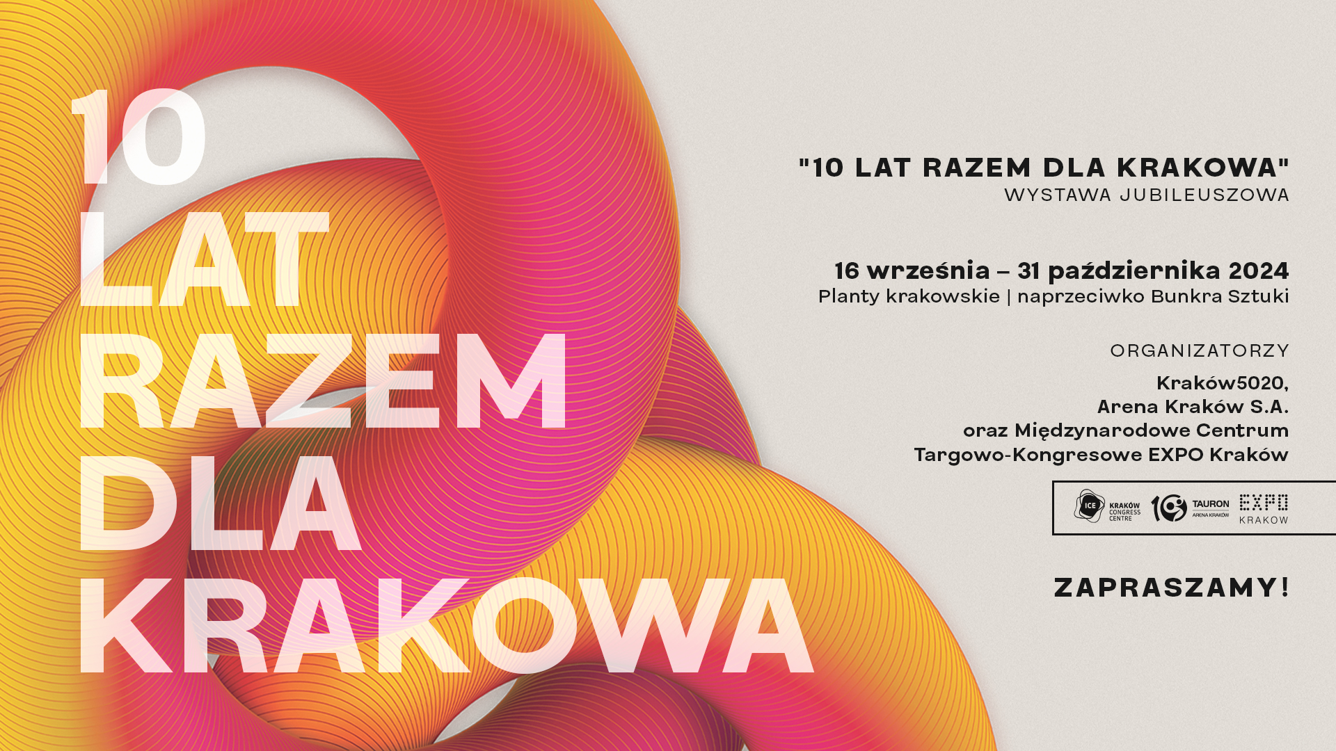 Trzy kluczowe obiekty na mapie Krakowa – Centrum Kongresowe ICE Kraków, TAURON Arena Kraków oraz Międzynarodowe Centrum Targowo-Kongresowe EXPO Kraków – obchodzą w tym roku swoje 10-lecie. Z tej okazji, spółka Kraków 5020, która jest operatorem ICE Kraków, oraz EXPO Kraków i Arena Kraków S.A. zorganizowały wyjątkową ekspozycję „10 LAT RAZEM DLA KRAKOWA”. Wystawa na krakowskich Plantach, naprzeciwko Bunkra Sztuki, potrwa od 16 września do 31 października 2024 roku.