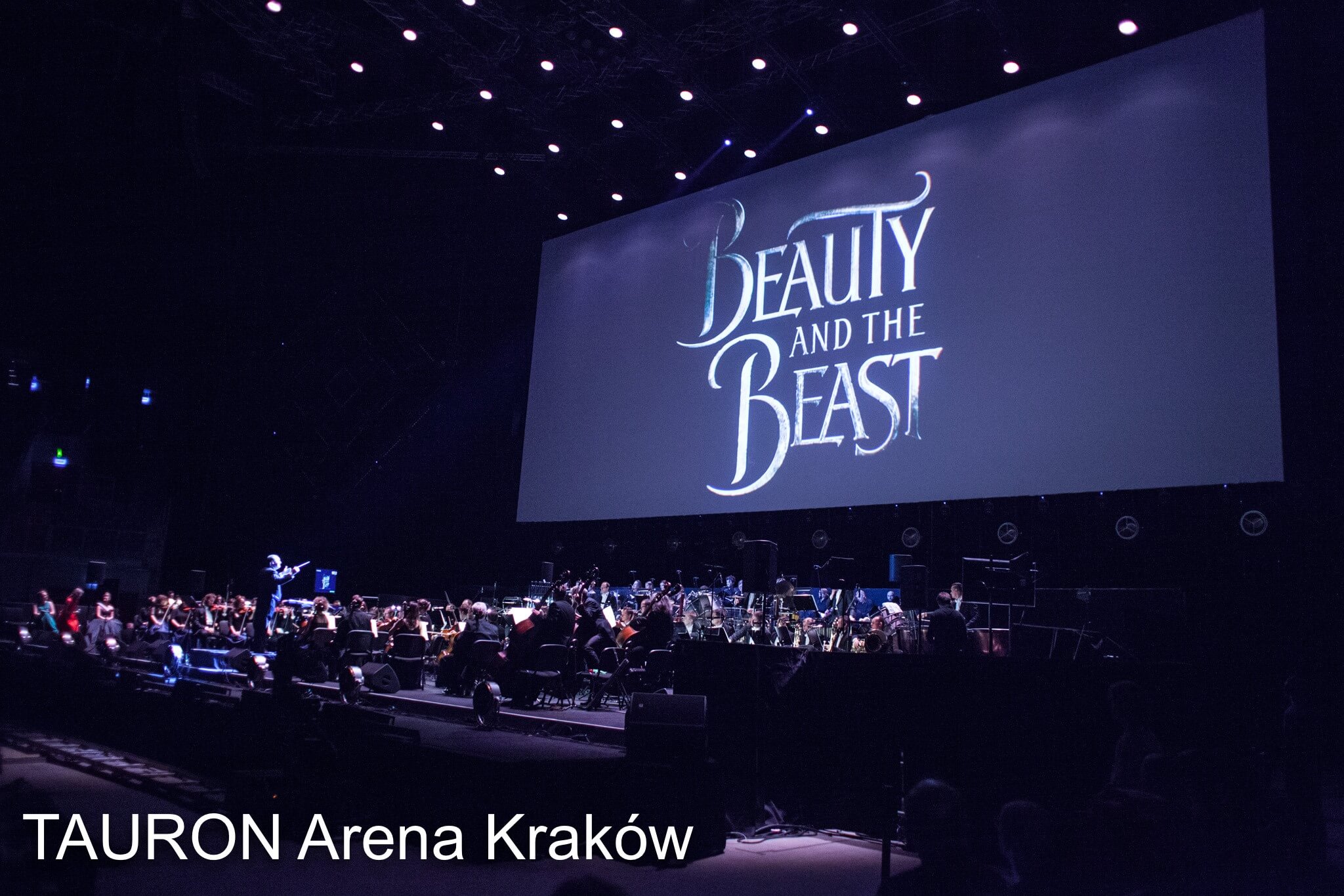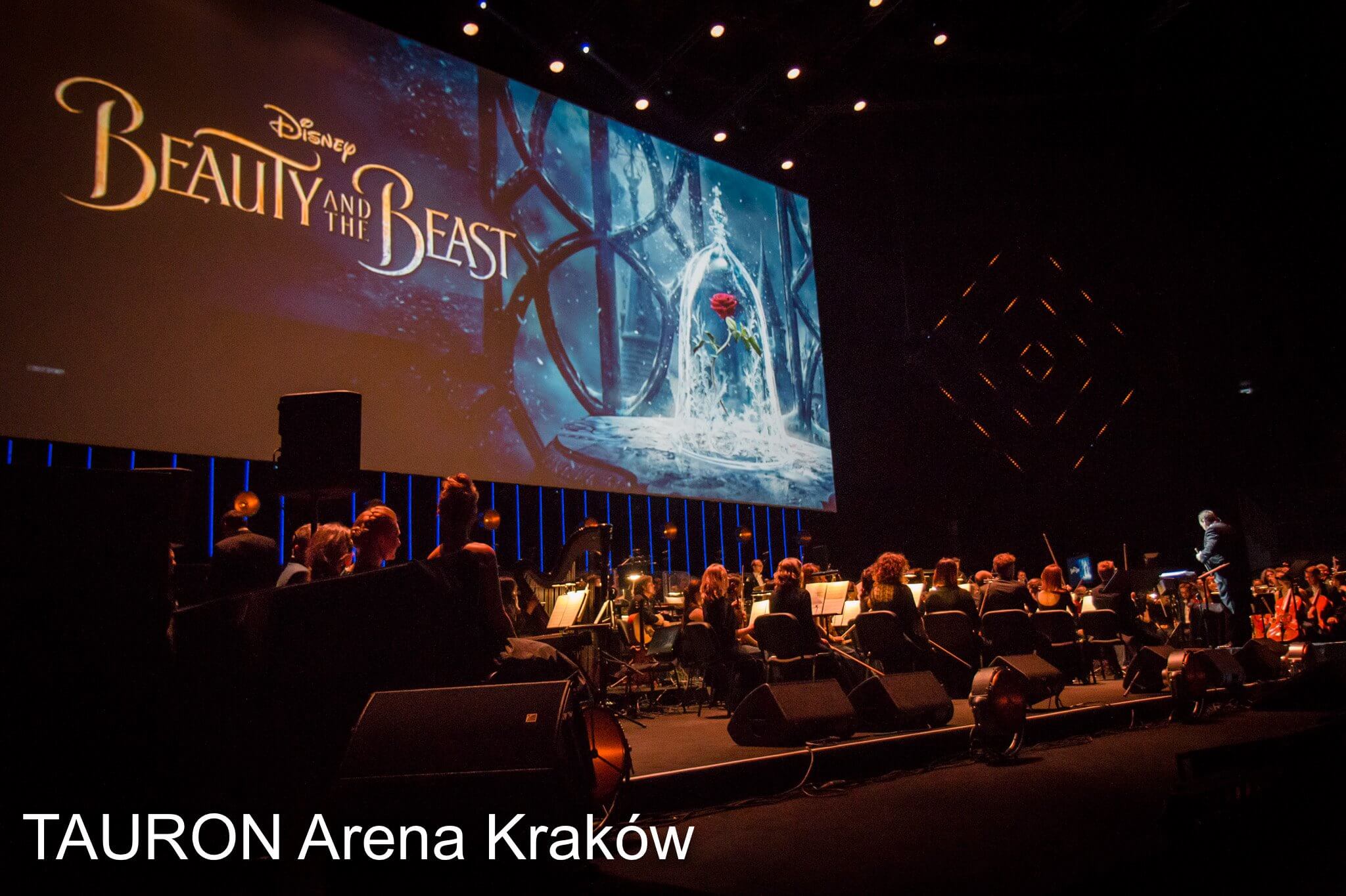 W koncertowej wersji Pięknej i Bestii w TAURON Arenie Kraków wystąpili Sylwia Banasik (Bella), Hubert Zapiór (w roli Bestii), Damian Aleksander (Gaston), Ewa Konstancja Bułhak (Pani Imbryk), Przemysław Glapiński (Maurycy), Sasza Reznikov (Le Fou), Adam Radnicki (Trybik), Piotr Kwinta (Płomyk), Anna Zawisza (Madame Garderobe), Dobromiła Lebiecka (Plumette). Orkiestrę Akademii Beetvovenowskiej i przygotowany przez Marię Piotrowską-Bogalecką Chór Polskiego Radia poprowadził amerykański dyrygent Erik Ochsner.