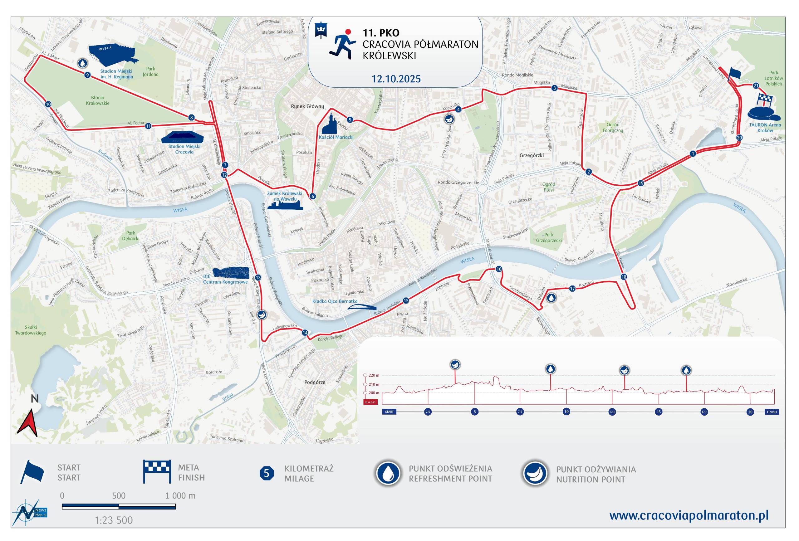 W trakcie 11. PKO Cracovia Półmaratonu Królewskiego uczestnicy rywalizacji znów zobaczą Zamek Królewski na Wawelu, a w tym roku półmaratończycy powrócą na Rynek Główny, przez który przebiegną wzdłuż Sukiennic, wcześniej mijając Mały Rynek. Wśród zabytków przy trasie nie zabraknie wielu historycznych budowli sakralnych – jak np. kościoły: Mariacki, św. Wojciecha, św. Apostołów Piotra i Pawła, św. Andrzeja, oo. Bernardynów, oo. Jezuitów i inne. W zasięgu wzroku biegacze będą mieć także nowoczesne i charakterystyczne dla naszego miasta obiekty – poza TAURON Areną Kraków, m.in. Centrum Kongresowe ICE Kraków, Cricotekę, Kładkę im. Ojca L. Bernatka, Ogród Botaniczny. Pokonując dystans 21,0975 km, zobaczą również największe krakowskie obiekty sportowe – oprócz oczywiście wspomnianej TAURON Areny Kraków, Stadiony Miejskie: im. Henryka Reymana i CracoviaHalę 100-lecia KS Cracovia wraz z Centrum Sportu Osób Niepełnosprawnych.
