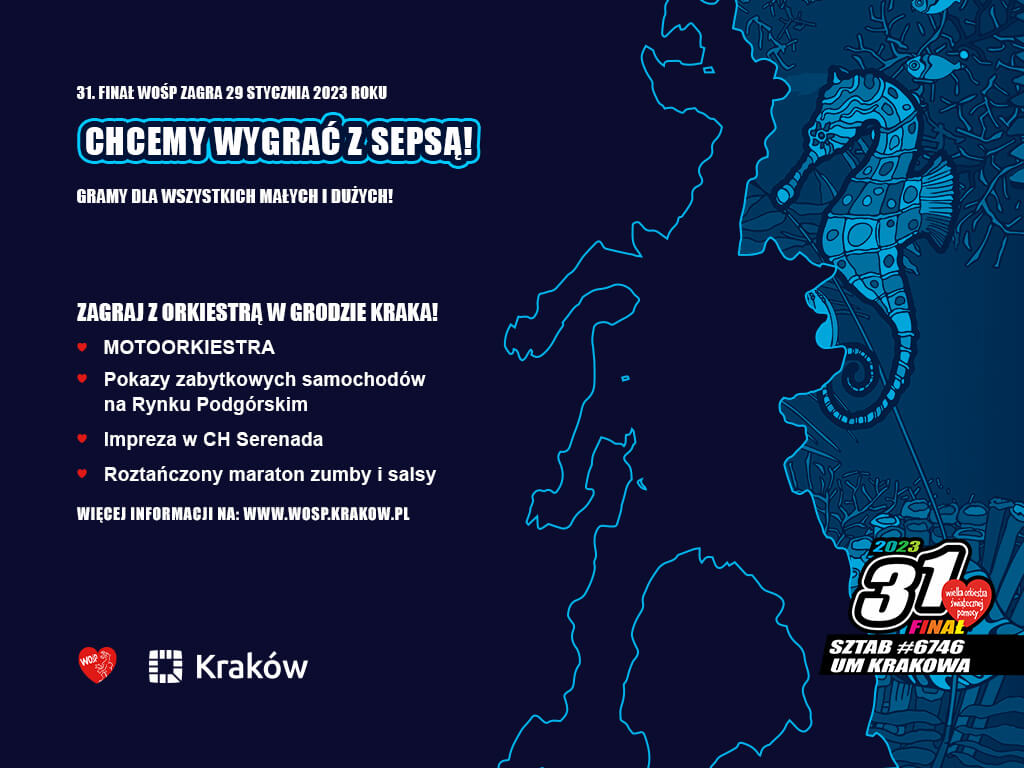 Takie hasło przyświeca tegorocznemu, 31. Finałowi WOŚP. Mamy nadzieję, że rozgrzeje ono serca Krakowian i napędzi ich do działania na rzecz walki z sepsą. Oj się będzie działo!