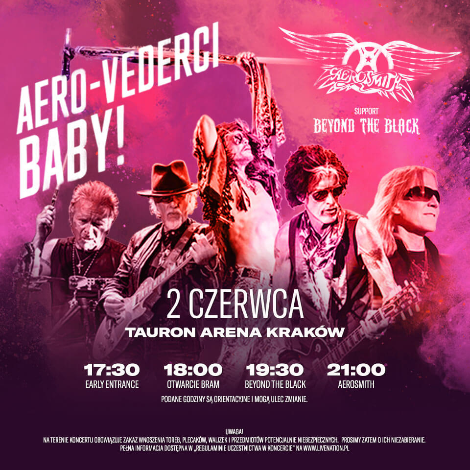 Aerosmith – najlepszy rock’n’rollowy zespół Ameryki – podróżuje po Europie z gigantyczną trasą koncertową. W piątek (2 czerwca) wystąpią w TAURON Arenie Kraków. Zapowiada się show, które koniecznie trzeba zobaczyć, zwłaszcza, że jest to pożegnalna trasa Aerosmith, którą zespół zakończy działalność mówiąc swoim fanom: “Aero-Vederci Baby!”.