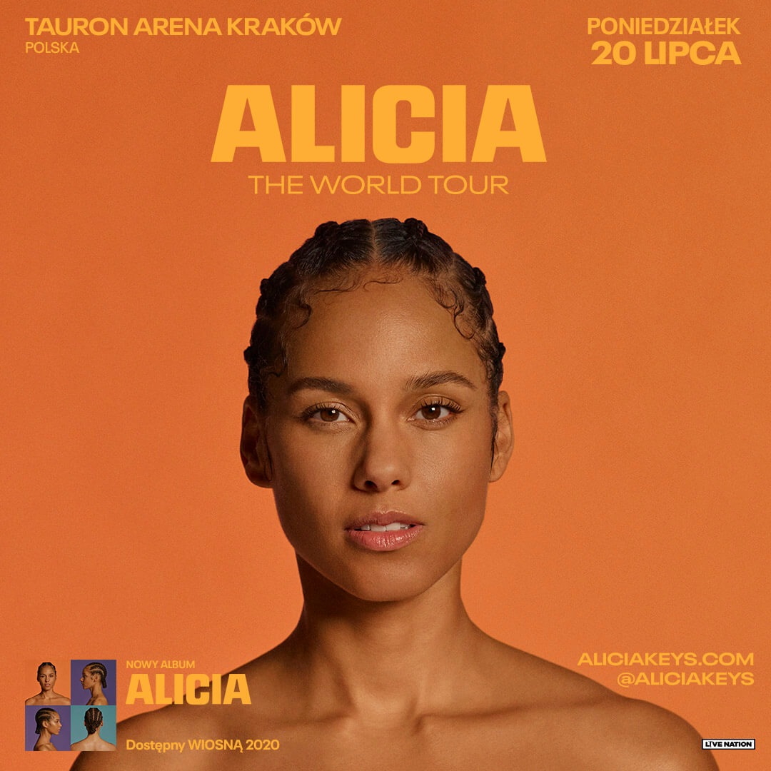 Oprócz najnowszych hitów, Alicia Keys zaprezentuje na żywo klasyki – od “No One” poprzez “If I Ain’t Got You” oraz “Girl on Fire” – w starannie przygotowanym, multimedialnym artystycznym widowisku podczas ALICIA – THE WORLD TOUR. Show będzie celebracją miłości i życia, wypełnionym magnetyczną energią, którą wyzwolić może tylko muzyka na żywo.