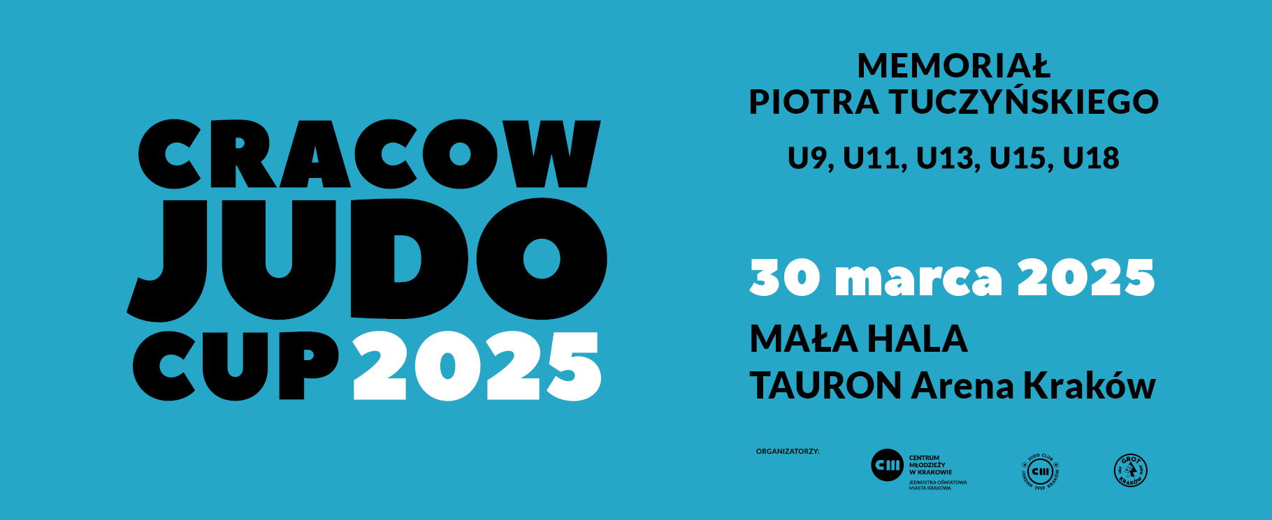 30 marca br. (niedziela) w Małej Hali TAURON Areny Kraków odbędzie się CRACOW JUDO CUP 2025 – Memoriał im. Piotra Tuczyńskiego: U9, U11, U13, U15, U18. Otwarcie turnieju zaplanowano na godz. 10:15.