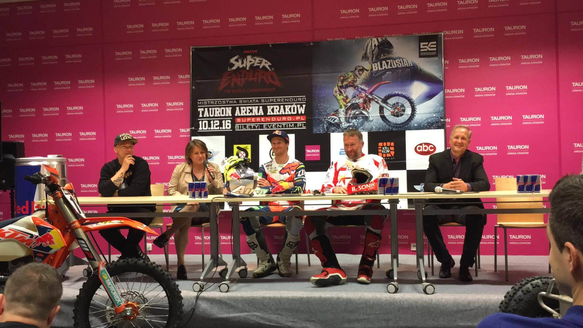 13 maja (piątek) w TAURON Arenie Kraków odbyła się konferencja prasowa zapowiadająca polską rundę Mistrzostw Świata FIM SuperEnduro. Będzie to wydarzenie wyjątkowe, ponieważ SuperEnduro po raz pierwszy zawita w rodzinne strony naszego najbardziej utytułowanego zawodnika Tadeusza Błażusiaka. Patronem honorowym wydarzenia, które odbędzie się 10 grudnia, jest zwycięzca Rajdu Dakar 2015 Rafał Sonik.