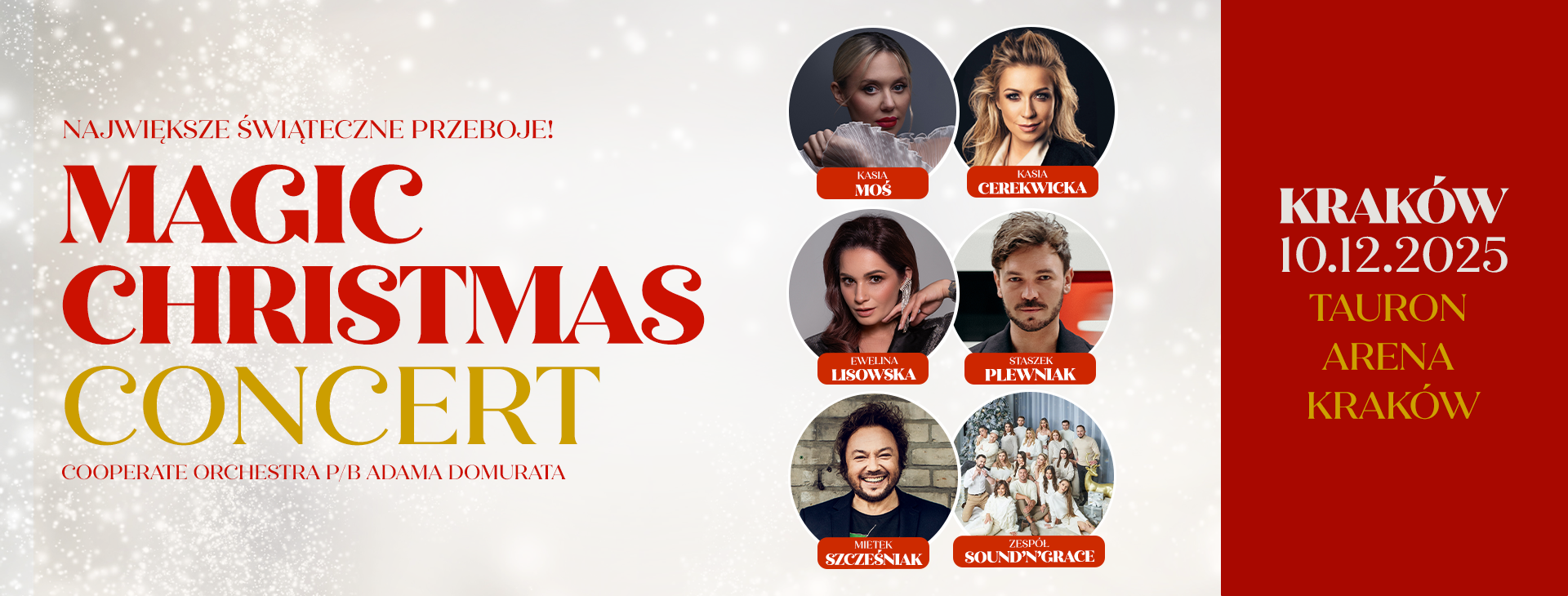 All I Want for Christmas, Last Christmas, Let it snow, Rocking around the Christmas tree, Santa Claus is coming to town, White Christmas i wiele innych uwielbianych utworów pozwolą poczuć Magię Świąt! Tegoroczna edycja koncertu Magic Christmas Concert wzbogacona zostanie o wszystkim dobrze znane polskie, zimowe przeboje, zachęcające do wspólnego śpiewania.
