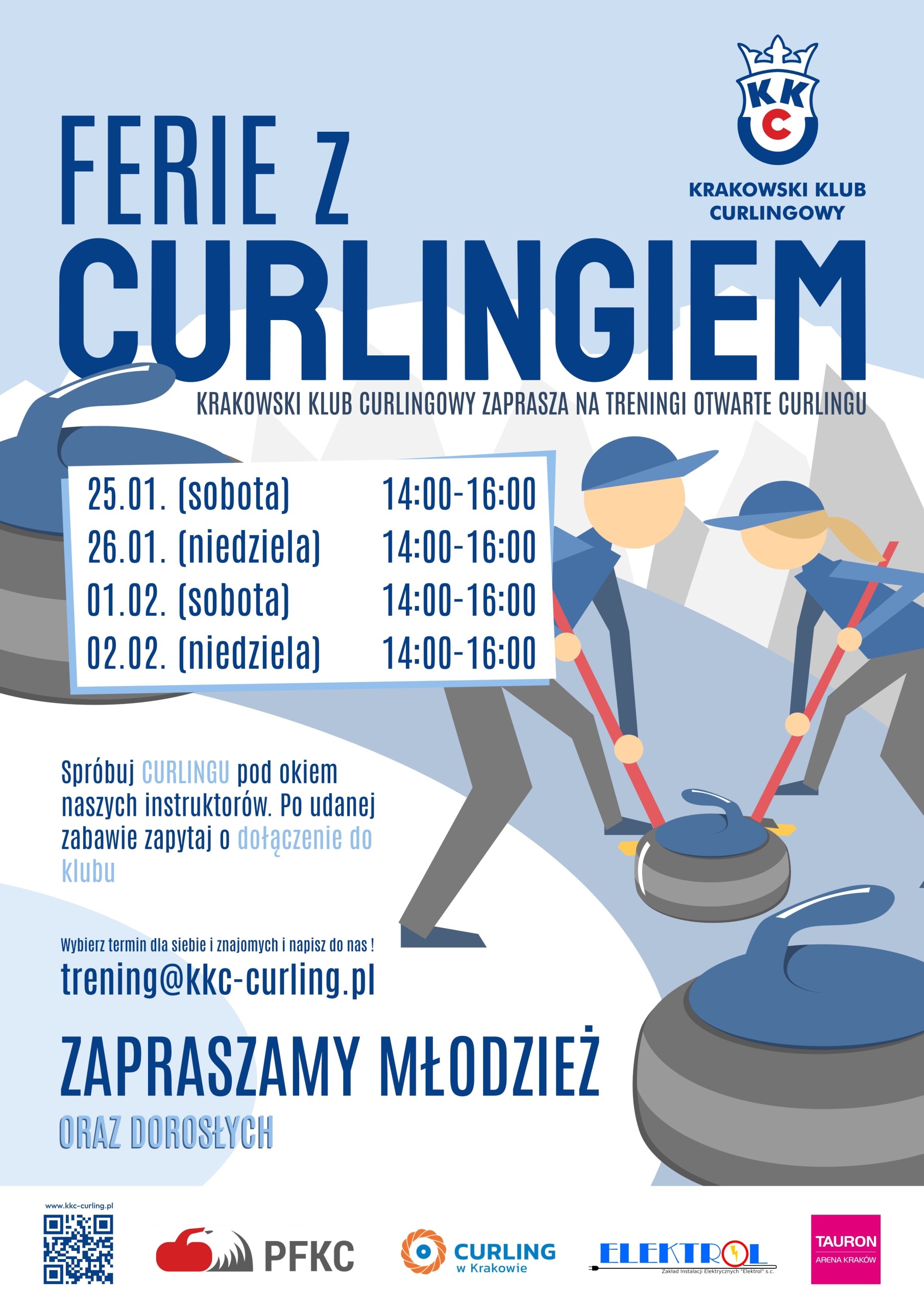 Poprowadzą je instruktorzy i zawodnicy Krakowskiego Klubu Curlingowego. Liczba miejsc jest ograniczona. Zapisy: trening@kkc-curling.pl – należy podać liczbę osób i termin.
