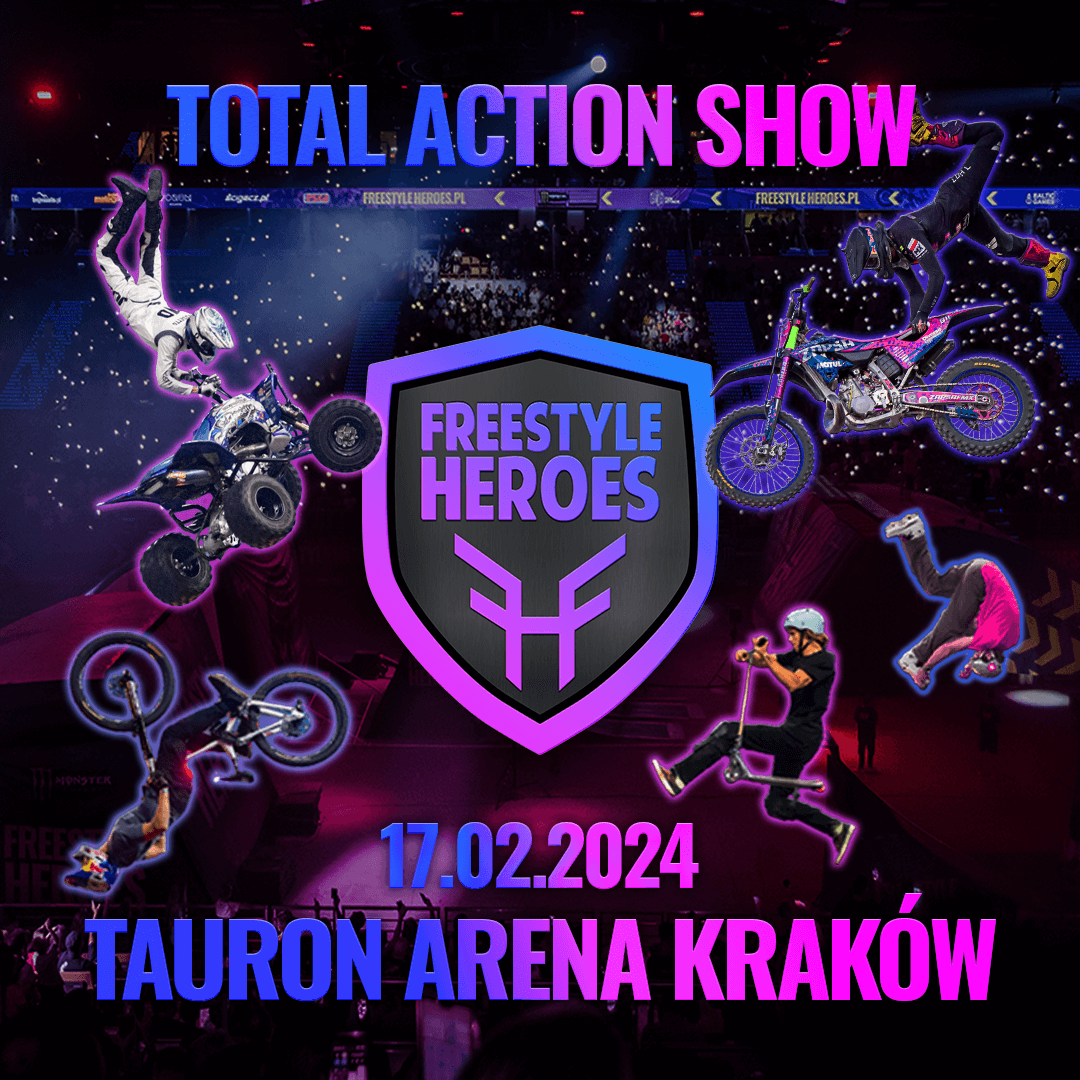 Szósta edycja, po raz pierwszy w Krakowie! FREESTYLE HEROES Total Action Show, czyli spektakl łączący sporty ekstremalne, ogień, muzykę, dźwięki, zapach i niesamowite emocje! Wydarzenie odbędzie się w sobotę, 17 lutego 2024 r. w TAURON Arenie Kraków!