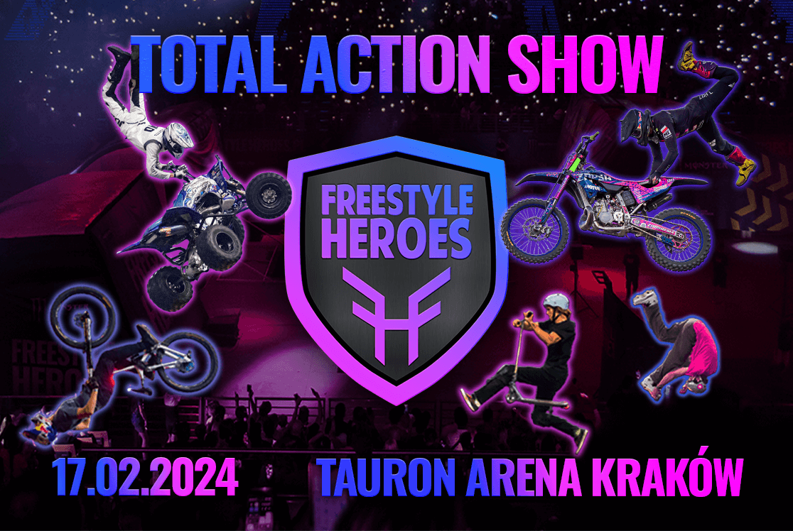 Szósta edycja, po raz pierwszy w Krakowie! FREESTYLE HEROES Total Action Show, czyli spektakl łączący sporty ekstremalne, ogień, muzykę, dźwięki, zapach i niesamowite emocje! Wydarzenie odbędzie się w sobotę, 17 lutego 2024 r. w TAURON Arenie Kraków!