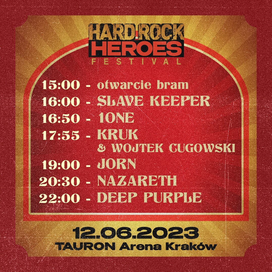 Headlinerem festiwalu będzie żywa legenda, formacja, która pomogła ukształtować i zdefiniować gatunek hard rocka i stopniowo wychodząc poza gatunkowe ramy, zachowała świeżość brzmienia, przyciągając kolejne pokolenia fanów – DEEP PURPLE! Wśród gości specjalnych pojawią się tacy artyści jak szkocka grupa Nazareth, polską scenę reprezentować będzie Kruk & Wojtek Cugowski. Skład festiwalu dopełniają: JORN oraz 2 polskie formacje, 1One i Slave Keeper!