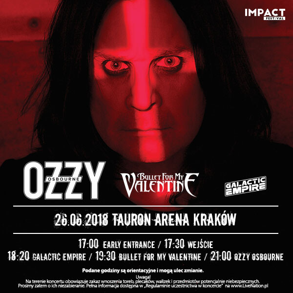 Podczas pożegnalnej światowej trasy, w ramach której artysta wystąpi na Impact Festival, OZZY OSBOURNE – członek Rock & Roll Hall of Fame, zdobywca nagród Grammy®, piosenkach, autor piosenek – świętować będzie ponad pięć dekad na scenie (łącznie jako artysta solowy i główny wokalista założonego w 1968 roku Black Sabbath). Trasa, która poprowadzi OZZY’ego z koncertami dookoła świata i potrwa aż do 2020 roku, będzie ostatnią światową trasą legendarnego artysty. OZZY nadal będzie jednak grać wybrane koncerty.