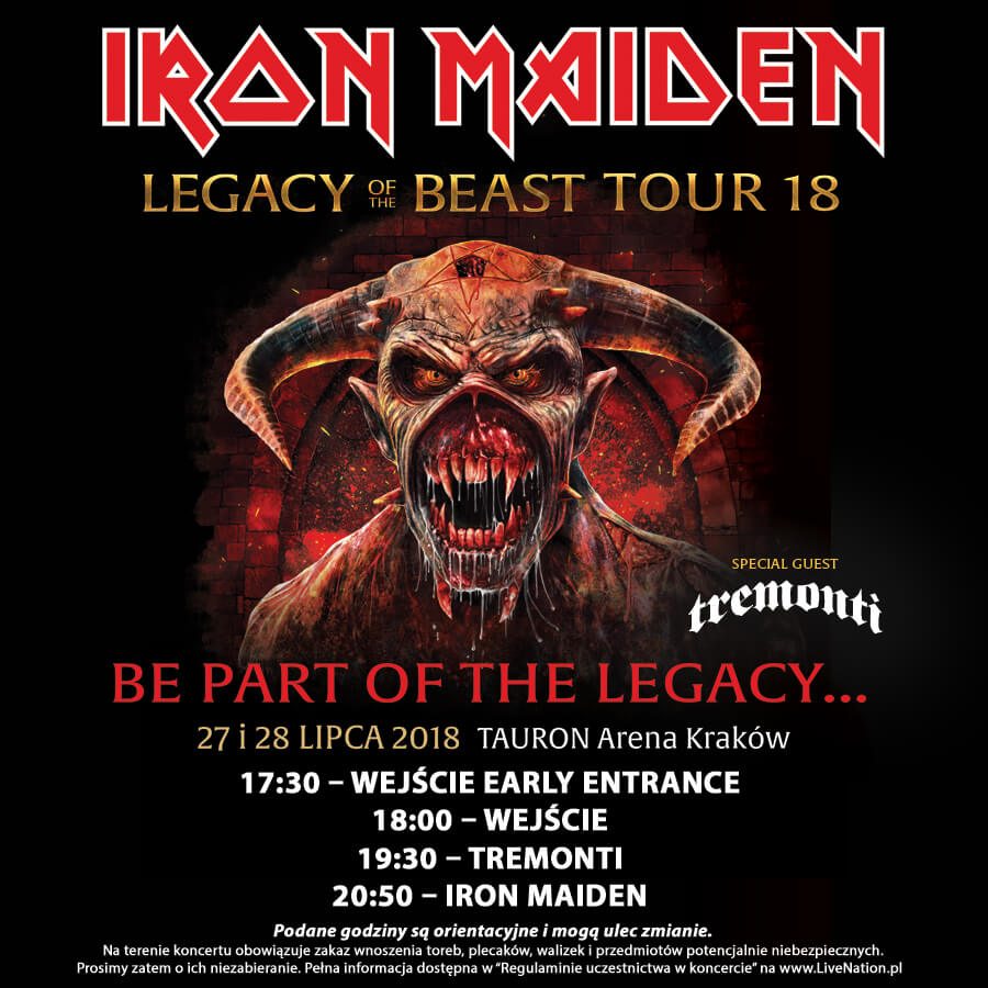 LEGACY OF THE BEAST EUROPEAN TOUR 2018 NIEZBĘDNIK KONCERTOWY Zapraszamy na koncert Iron Maiden! 28 lipca w TAURON Arenie Kraków! Zadzwoń +48 739 455 725 lub napisz skybox@tauronarenakrakow.pl Zapoznaj się z naszą ofertą biznesową! Rozkład godzinowy ...