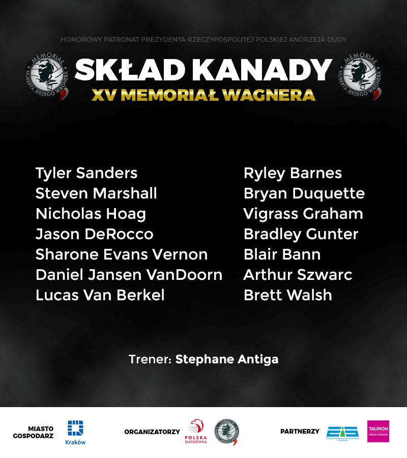 Stephane Antiga zdecydował! Znamy ostateczny skład Kanady na XV Memoriał Huberta Jerzego Wagnera. Selekcjoner kanadyjskiej kadry podał czternastkę na turniej, który w piątek (11 sierpnia) rozpocznie się w TAURON Arenie Kraków.