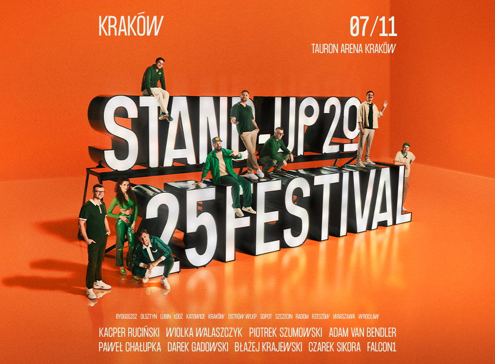 Please, Stand-up prezentuje: Kraków Stand-up Festival™️ 2025! Wystąpią: Kacper Ruciński, Piotrek Szumowski, Wiolka Walaszczyk, Paweł Chałupka, Adam Van Bendler, Błażej Krajewski, Darek Gadowski, Czarek Sikora oraz Falcon1.