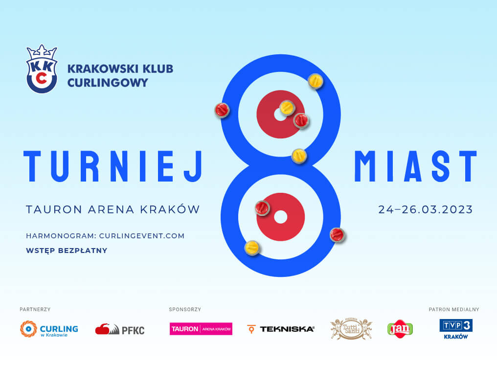 Zapraszamy  na pierwszy Krakowski Ogólnopolski Turniej Curlingu, Turniej 8 Miast! Wydarzenie odbędzie się w dniach 24-26 marca 2023 r.