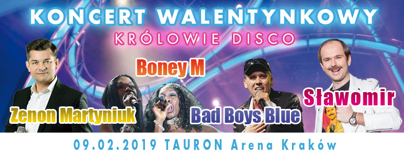Zenon Martyniuk, BoneyM, Bad Boys Blue i Sławomir to Królowie Disco, którzy 9 lutego 2019 roku wystąpią w TAURON Arenie Kraków na specjalnym walentynkowym koncercie. Bilety są już w sprzedaży na eventim.pl. Organizatorem wydarzenia jest Solaris Music.