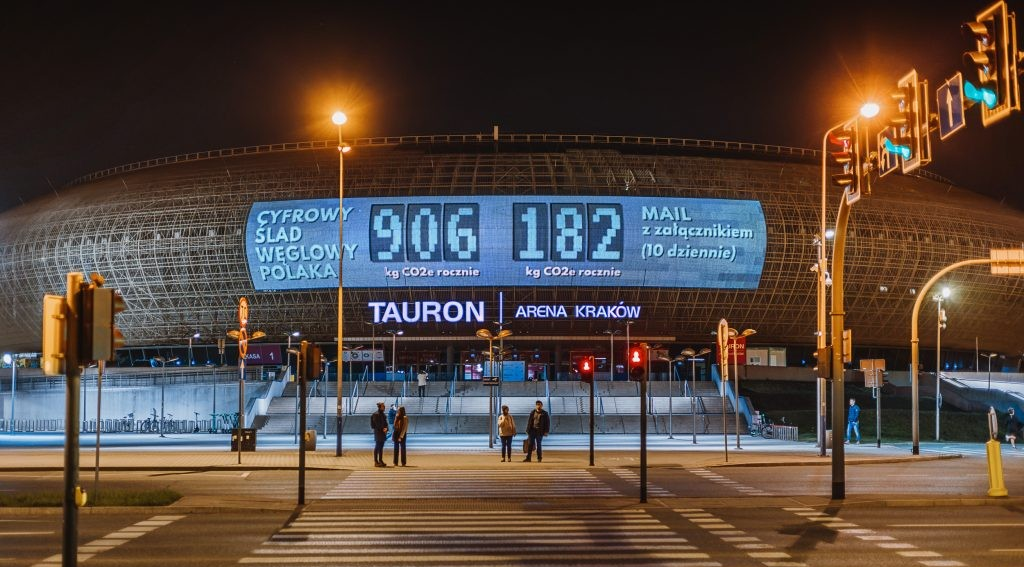 Licznik pokazuje, jak nasze codzienne działania w internecie, takie jak wysyłka maili, oglądanie filmów na platformach streamingowych czy przeglądanie mediów społecznościowych wpływają na środowisko. Licznik cyfrowego śladu węglowego, został uruchomiony na elewacji TAURON Areny Kraków. Jego pojawienie się jest związane z przypadającym 22 kwietnia, Międzynarodowym Dniem Ziemi. Licznik będzie się włączał codziennie o godzinie 20.30.