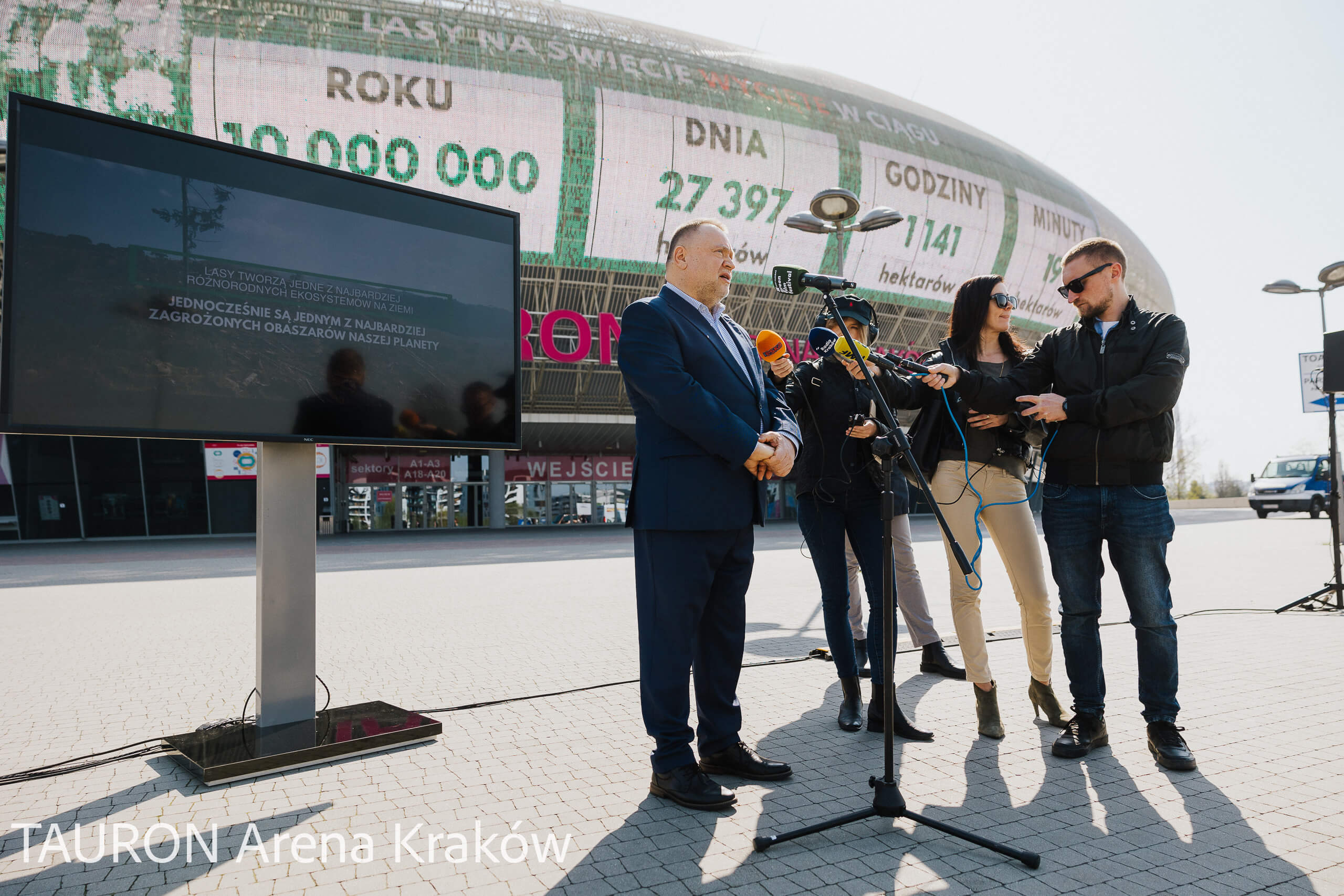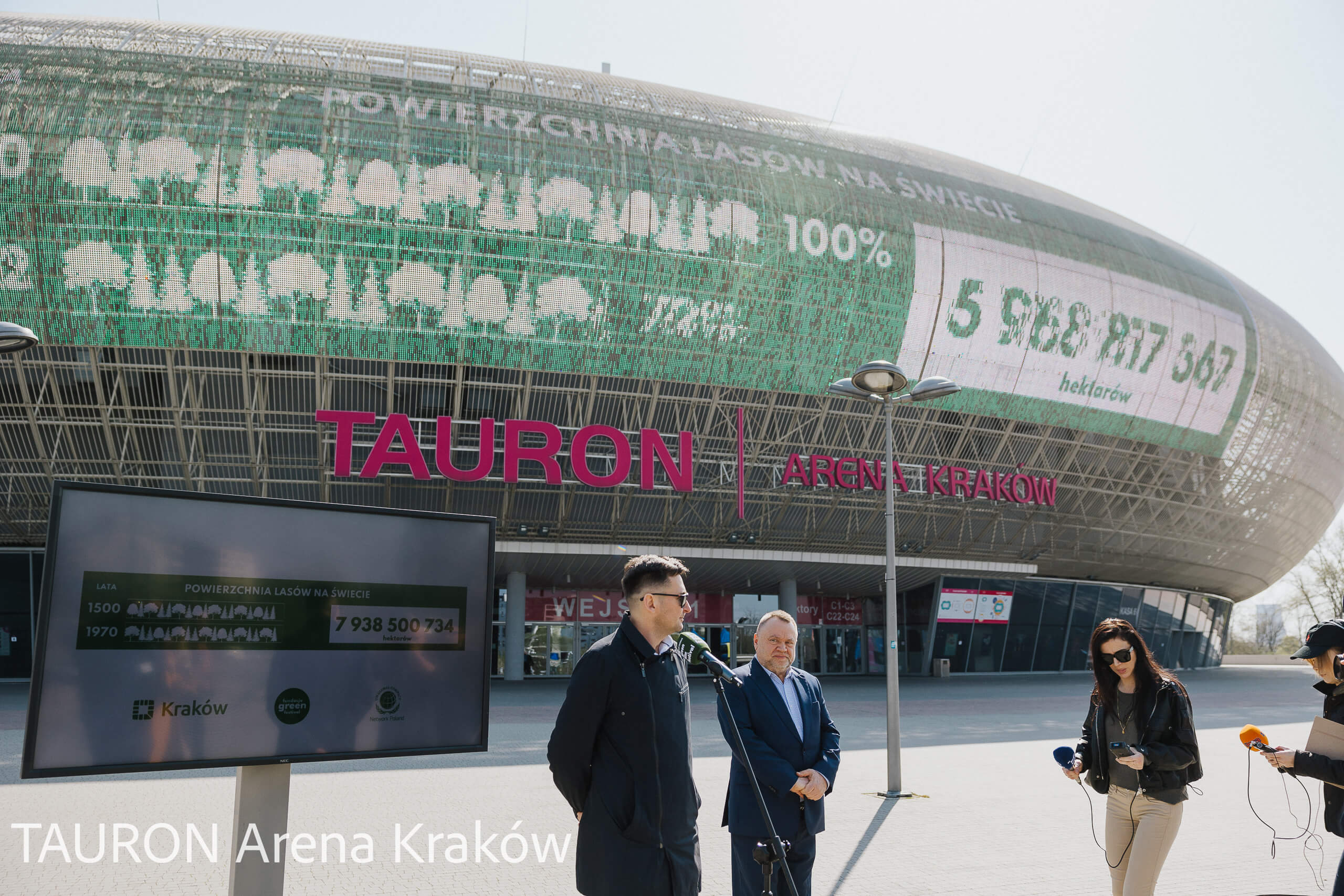 Na ekranie LED TAURON Areny Kraków w piątek (21 kwietnia) został uruchomiony licznik wylesiania. Prezentacja licznika to jedno z wydarzeń odbywających się z okazji Międzynarodowego Dnia Ziemi. Ten licznik to kontynuacja projektu zainaugurowanego w roku 2021 w formie licznika emisji CO2 oraz licznika ginących gatunków prezentowanego w przestrzeni TAURON Areny Kraków w roku ubiegłym.