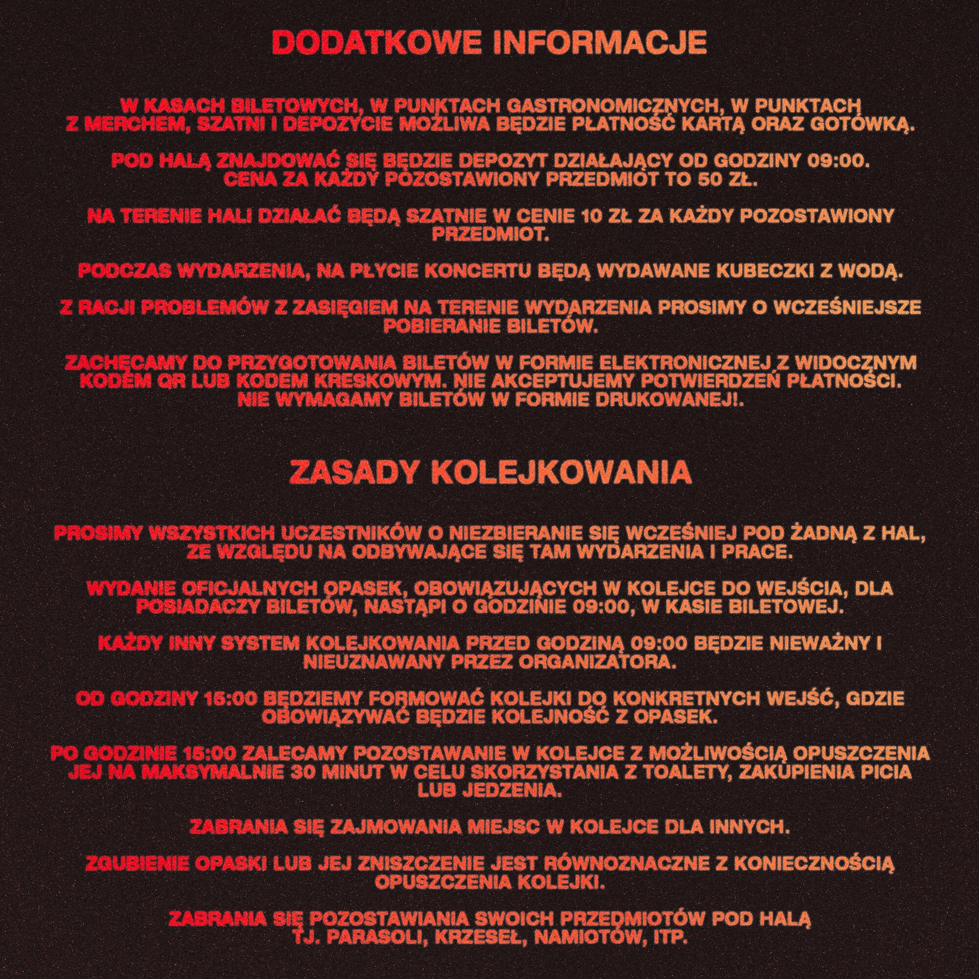 Zalecamy wcześniejszy przyjazd aby uniknąć kolejek przed rozpoczęciem wydarzenia!