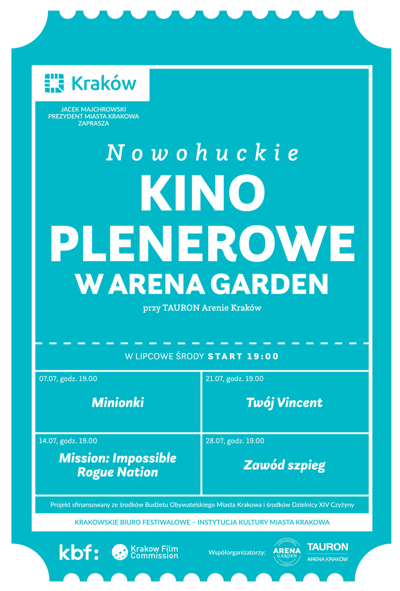 Nowohuckie Kino Plenerowe jest finansowane ze środków Budżetu Obywatelskiego oraz środków Dzielnicy XIV Czyżyny.