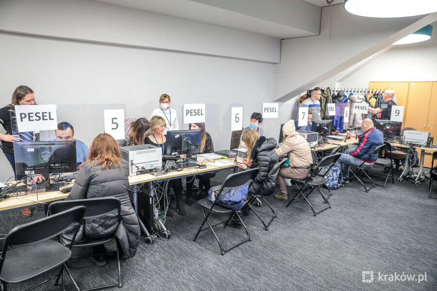 Punkt MOPS działa również na zewnątrz areny (przy wejściu nr 4) – dla osób, które mają już nadany numer PESEL przez gminę Kraków lub inne gminy na terenie kraju.