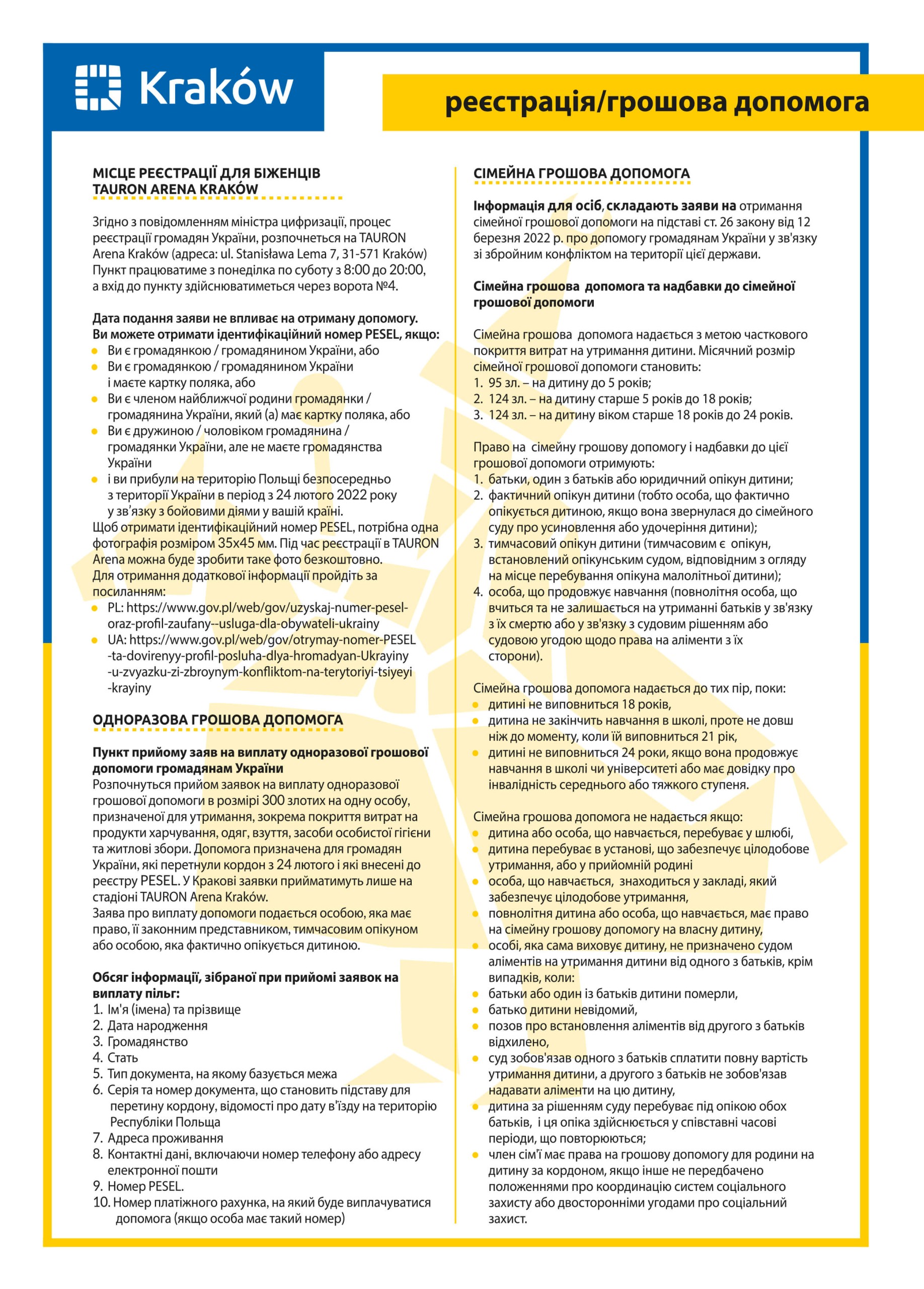 Представники пункту є також на вулиці при вході номер 4 для тих, хто дістав PESEL поза Краковом.