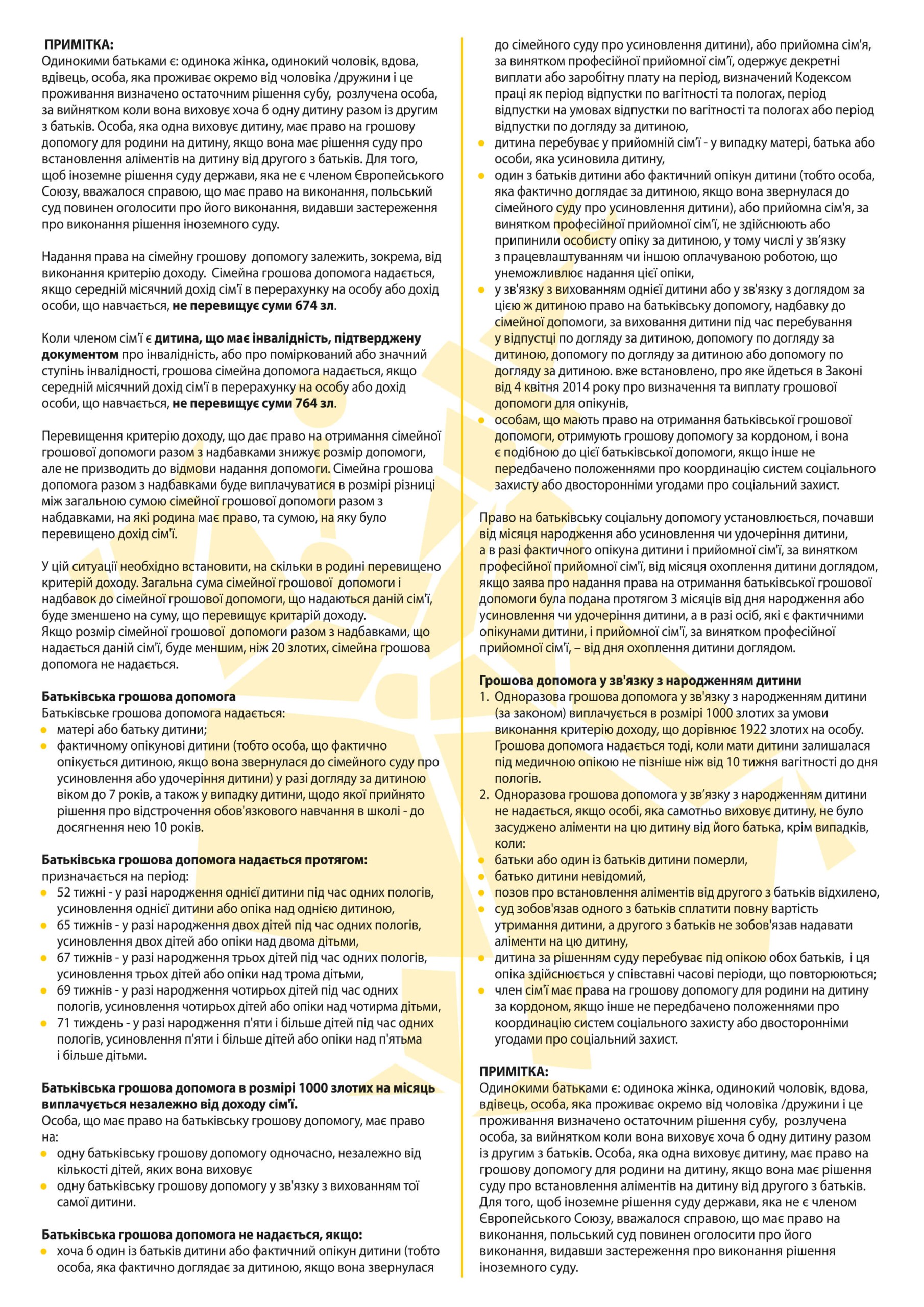 3. Допомога на виховання дитини передбачена в постановленні від 11 лютого 2016р. – допомога 500 зл/міс на дитину