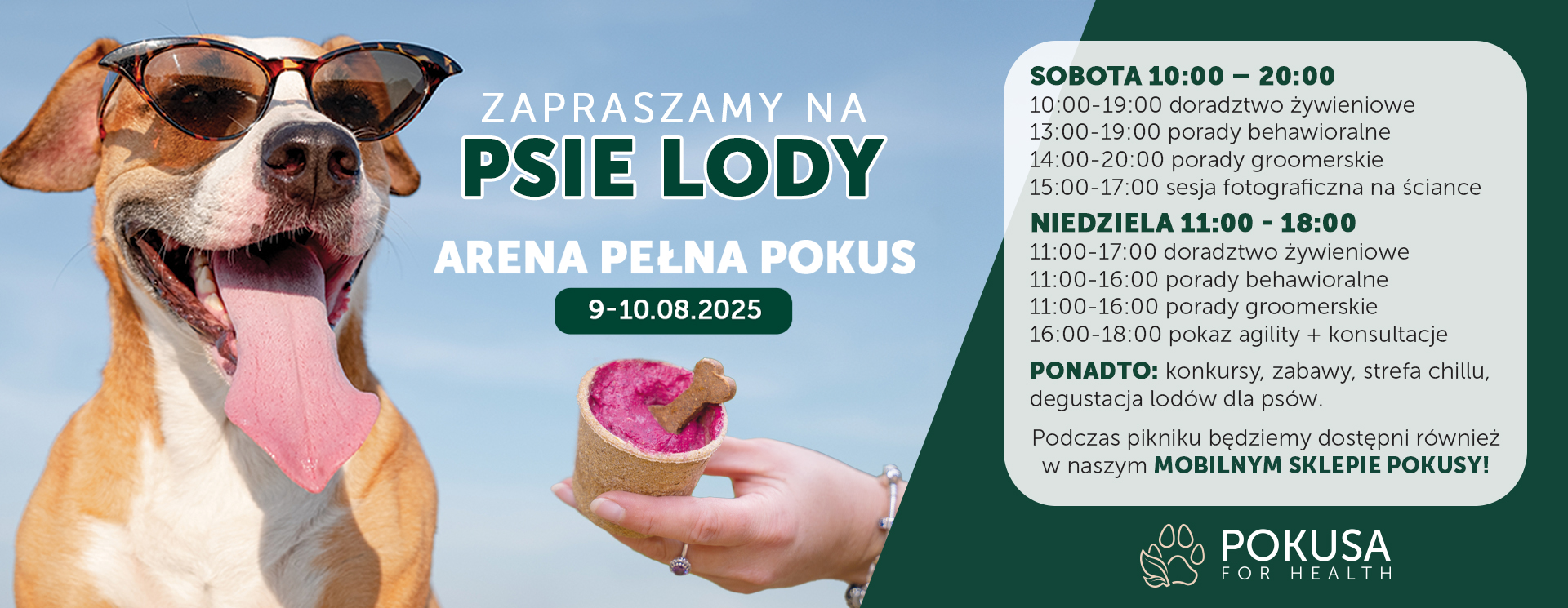 Podczas pikniku będziesz mógł zaopatrzyć swojego psiaka w coś zdrowego i smacznego od Pokusa for Health – nasze zielone stoisko będzie pełne suplementów, smaczków i karmy, o których chętnie opowiemy więcej i poznamy Was z naszą marką.