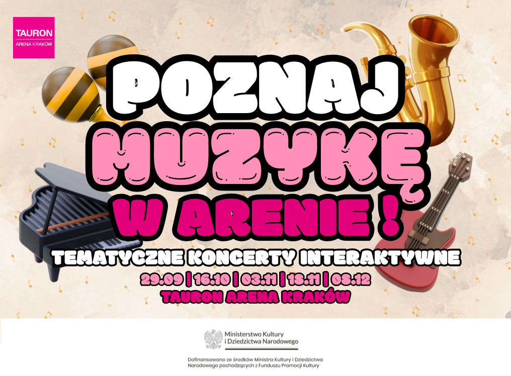 Tej jesieni w TAURON Arena Kraków zaprasza na nowy cykl edukacyjno-muzyczny: Poznaj muzykę w Arenie. To skierowane do uczniów szkół podstawowych spotkania łączące muzykę na żywo z elementami warsztatowymi.