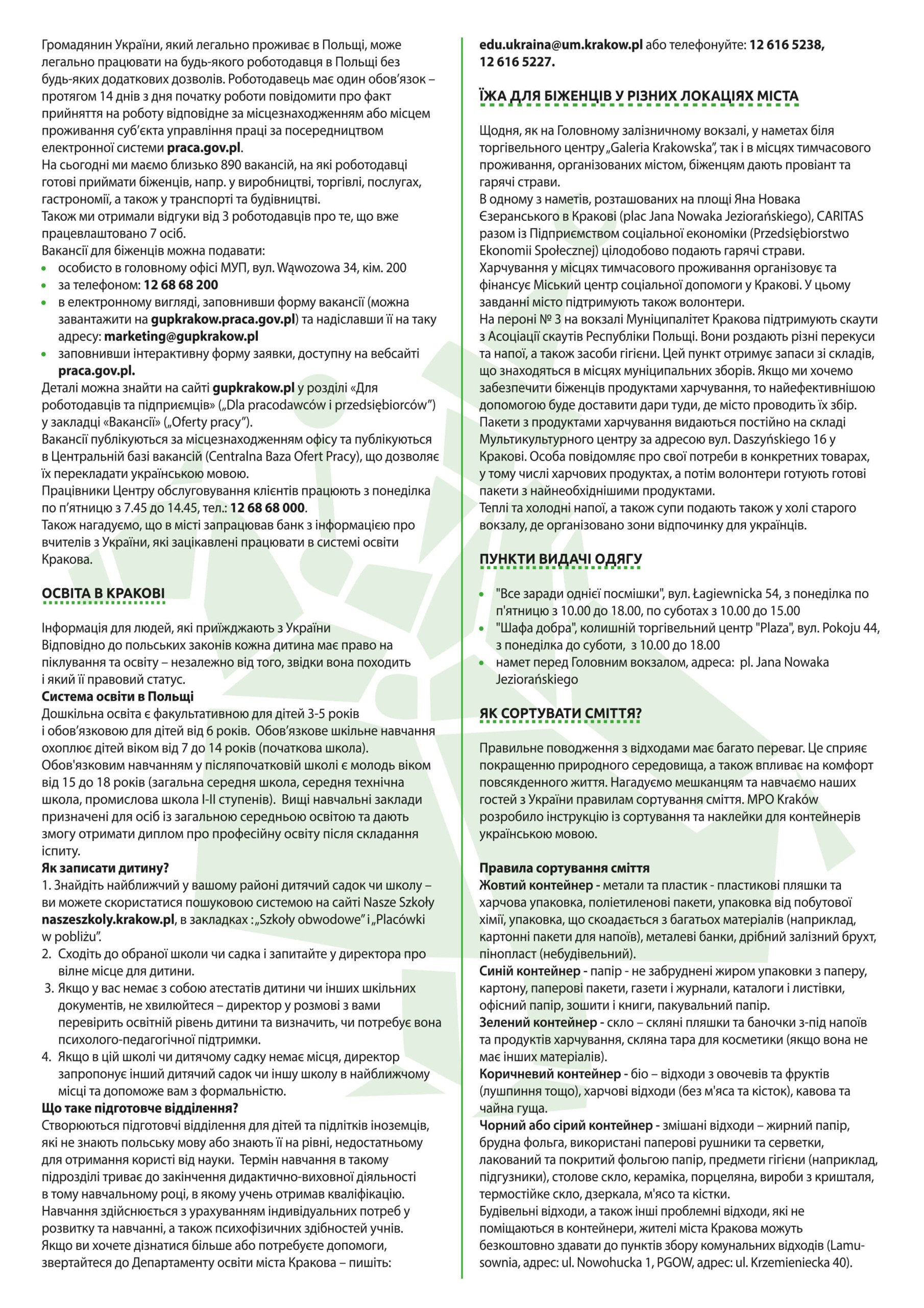 Краківській Центр Допомоги працює від понеділка до п’ятниці в годинах 9:00 – 17:00.