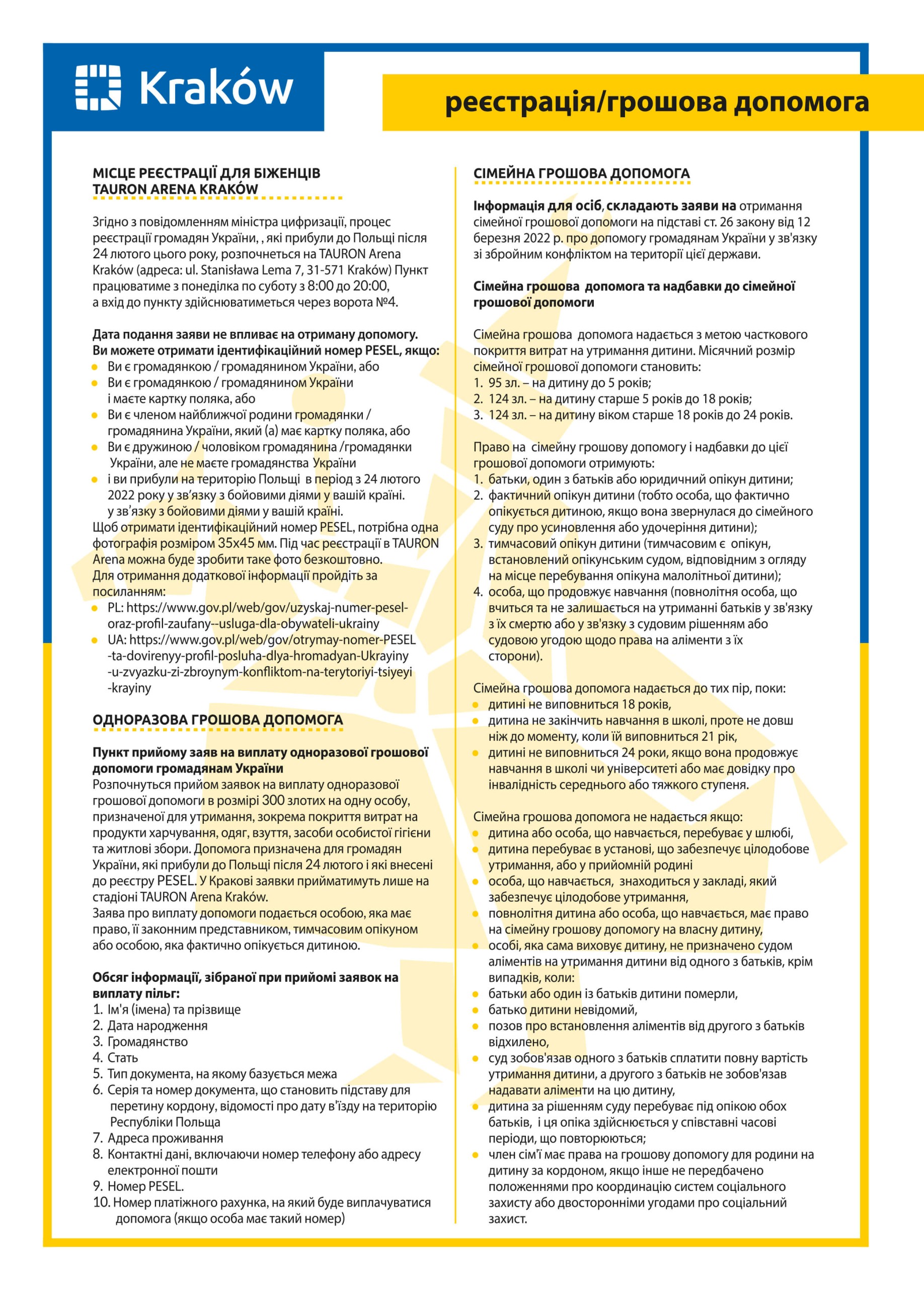Представники Пункту є також на вулиці, при вході № 4, для тих хто вже отримав PESEL як в Кракові так і за межами Кракова.