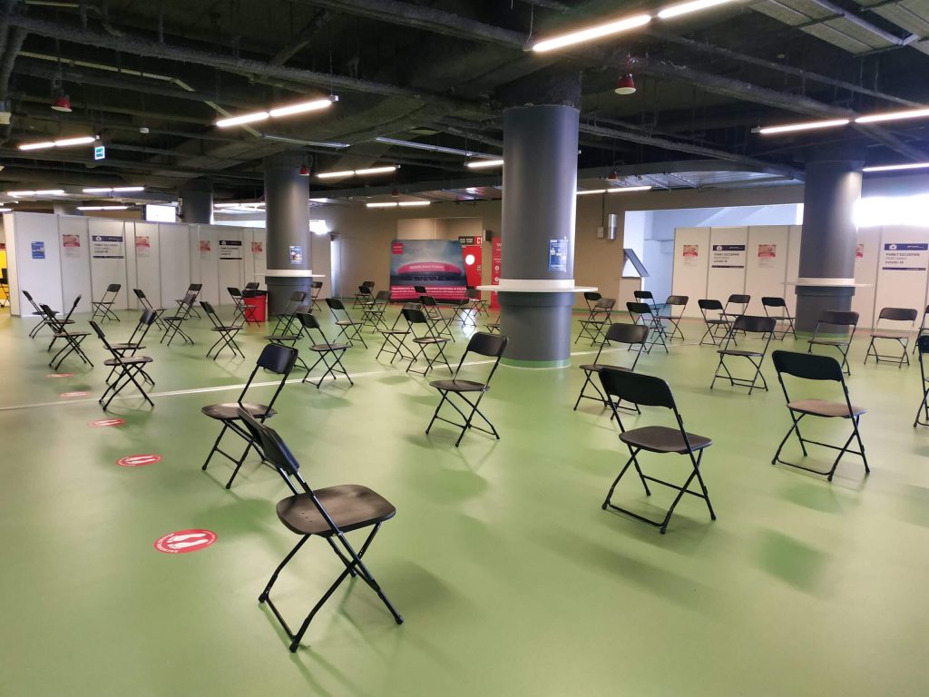 Po rejestracji należy udać się do jednego ze wskazanych przez obsługę stanowisk, przy których prowadzone są szczepienia lub poczekać na swoją kolej w wyznaczonej do tego celu poczekalni.