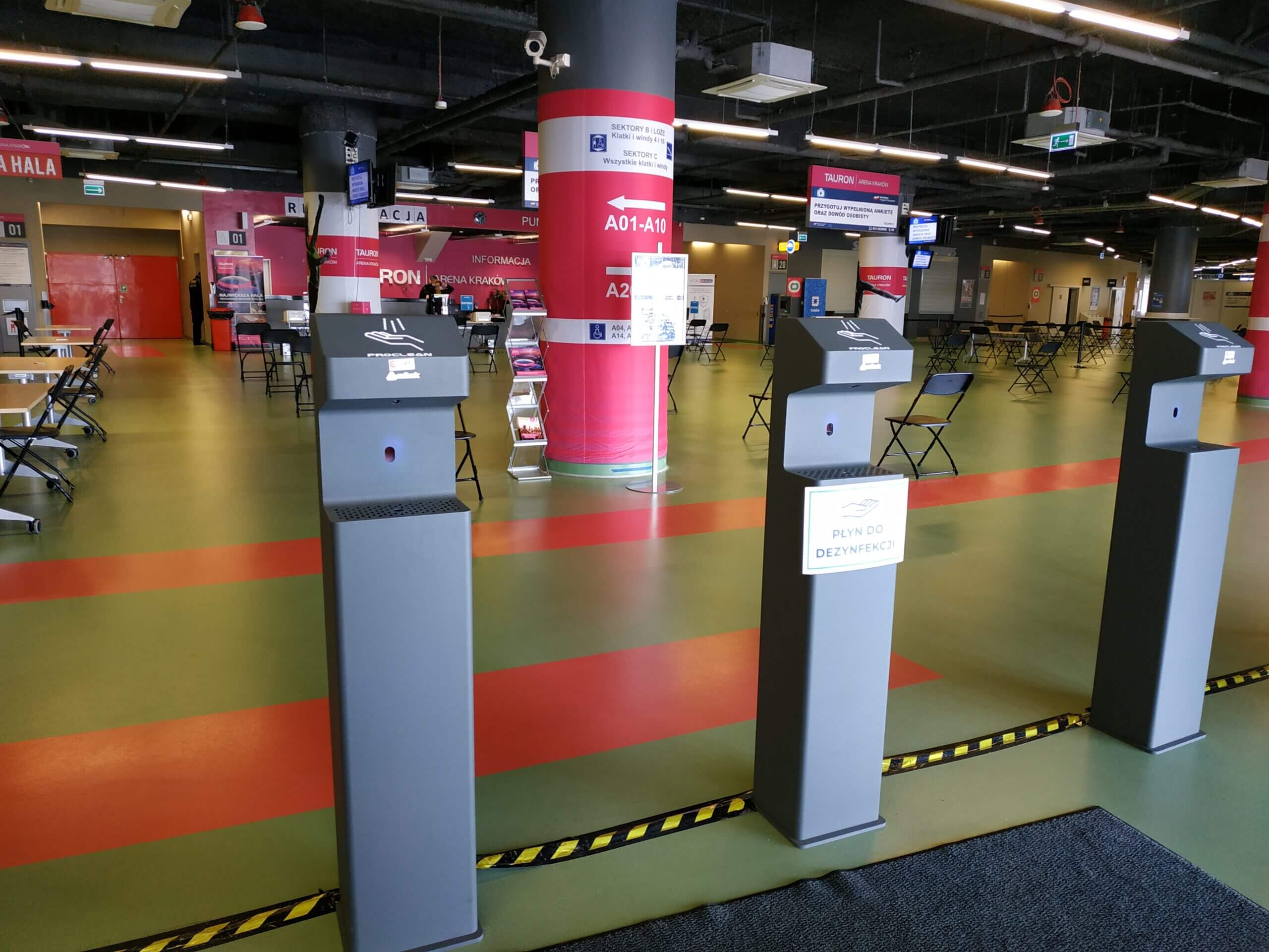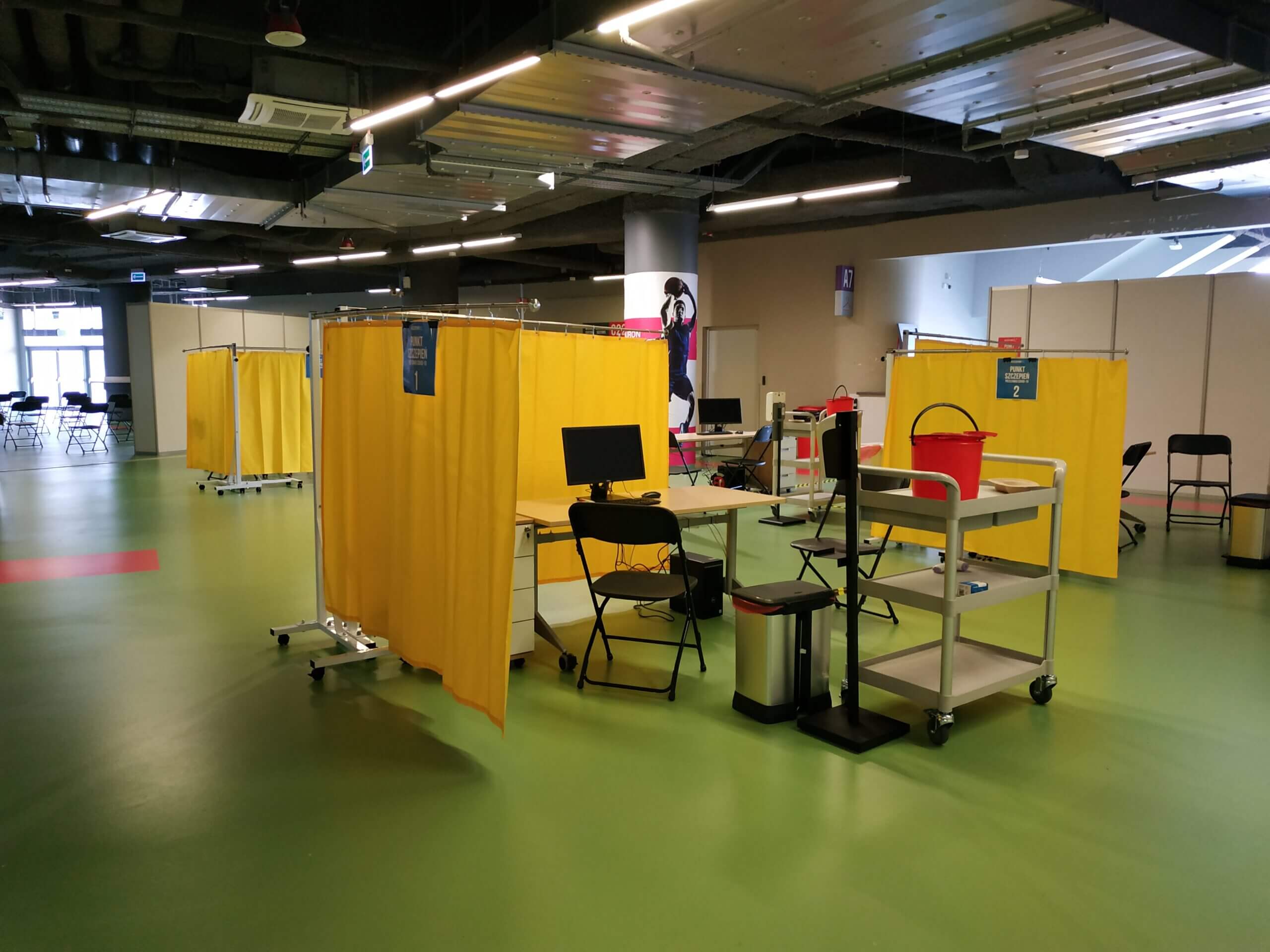 Stanowiska do szczepień są zlokalizowane we foyer obiektu.