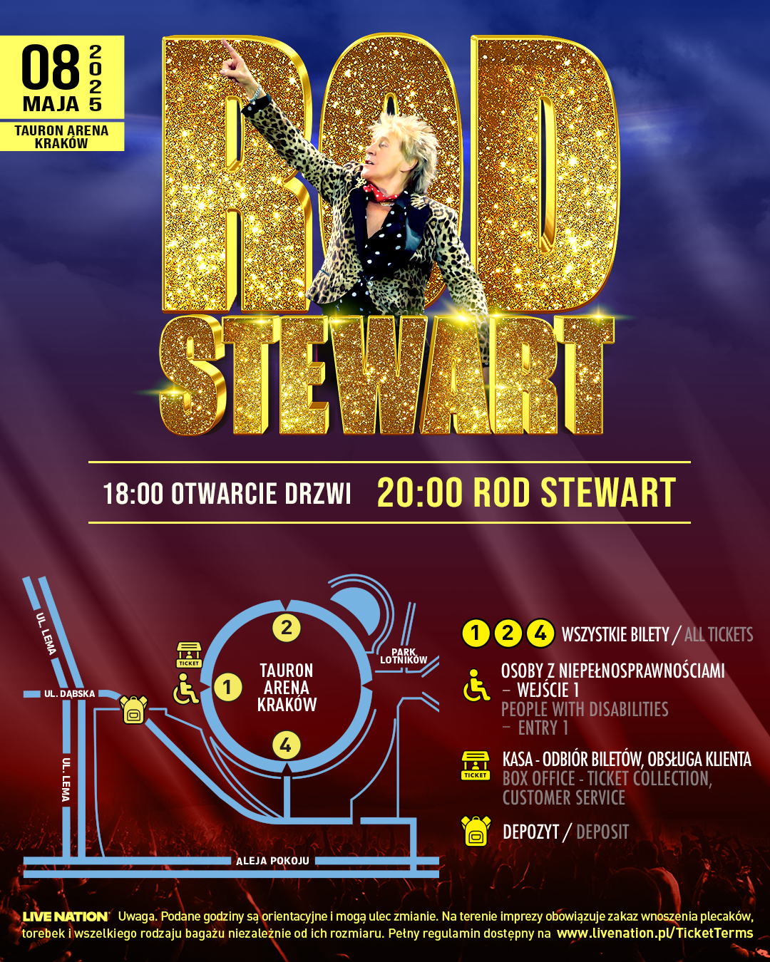 Przekazujemy pakiet informacji, jak przygotować się do koncertu Roda Stewarta w dniu 08 maja 2025 w TAURON Arenie Kraków.
