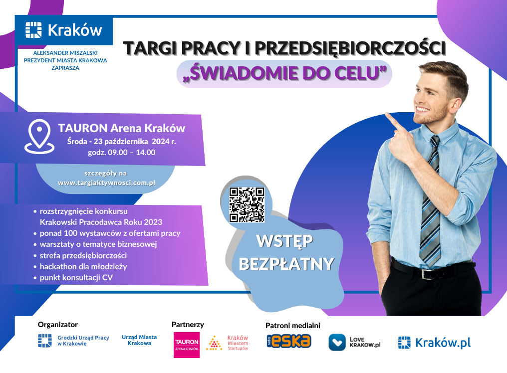Koniecznie odwiedź Targi Pracy i Przedsiębiorczości „Świadomie do celu”. W ciągu jednego dnia będziesz mógł bezpośrednio porozmawiać z najlepszymi pracodawcami w Krakowie, a także skonsultować swoje CV z doradcami zawodowymi.