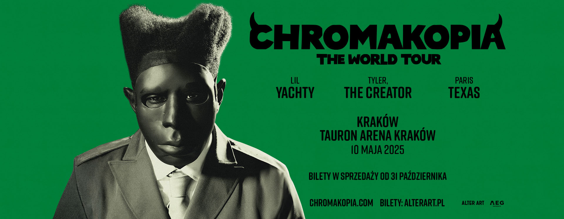 Tyler, The Creator ogłosił światową trasę koncertową promującą jego nadchodzący album „Chromakopia”, który ukaże się w poniedziałek, 28 października. CHROMAKOPIA: THE WORLD TOUR, w której udział wezmą również Lil Yachty oraz Paris Texas, obejmie w 2025 roku Amerykę Północną, Europę i UK, Australię i Nową Zelandię, a już 10 maja zawita do TAURON Areny Kraków!