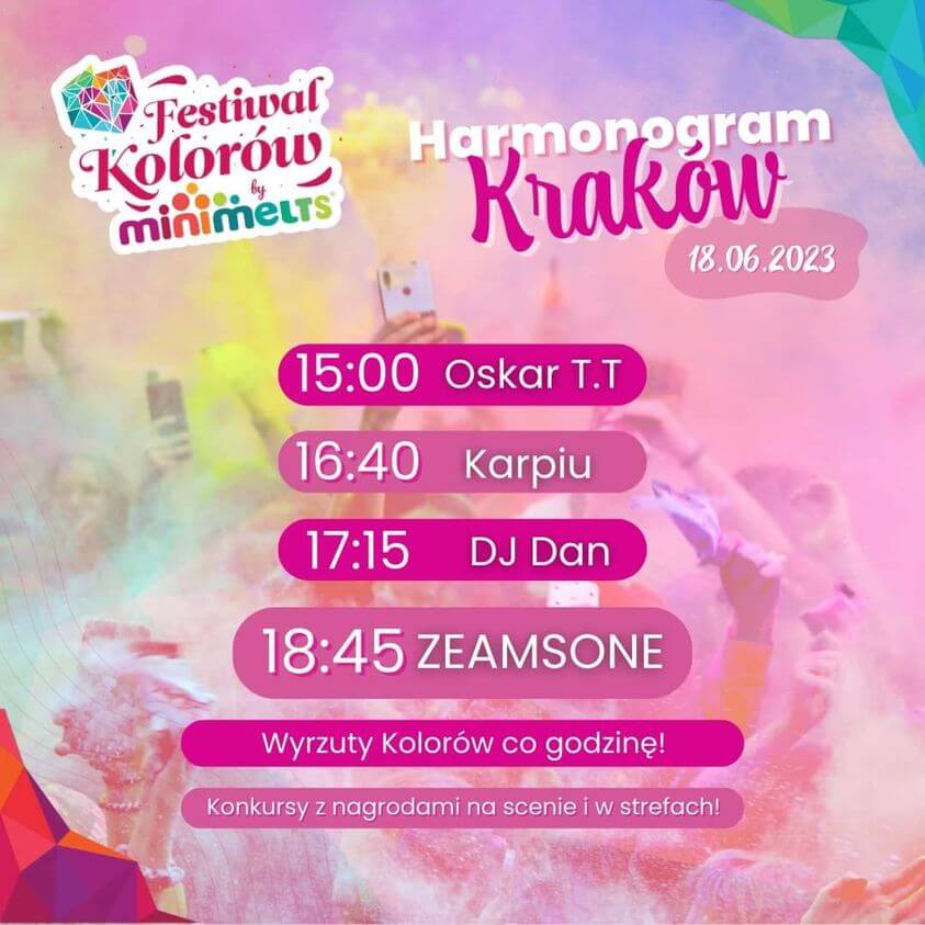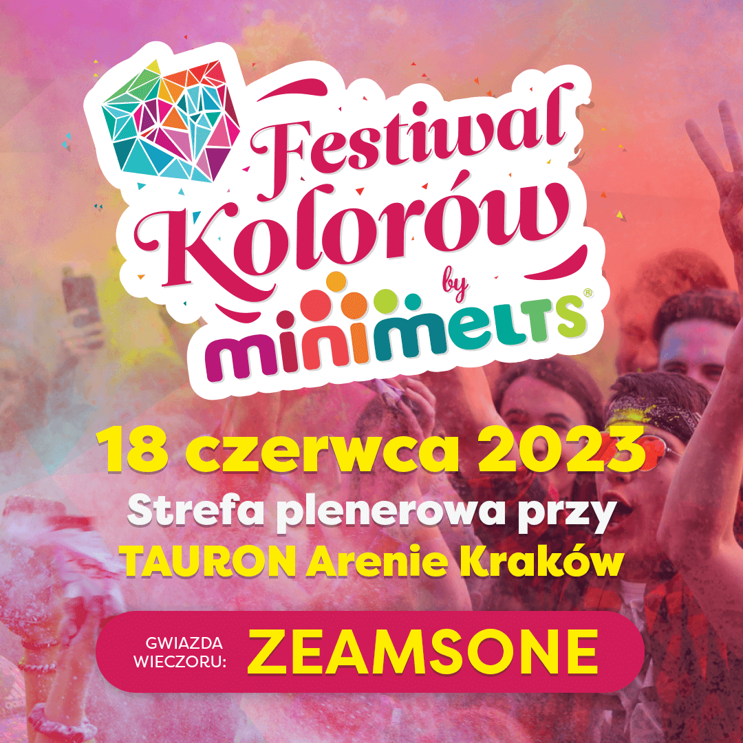 Festiwal Kolorów by Mini Melts w Krakowie to najbardziej kolorowa impreza w Polsce! Ta popularna zabawa polega na wyrzucaniu w górę przez tysiące ludzi Kolorów Holi, które tworzą wielką barwną chmurę! Cały festiwal wypełnia atmosfera wiecznej wesołości. Młodzi i starsi, wszyscy tańczą, śpiewają i bawią się, rzucając kolory w powietrze! To idealne miejsce aby się wyszaleć i zrobić niesamowite zdjęcia.