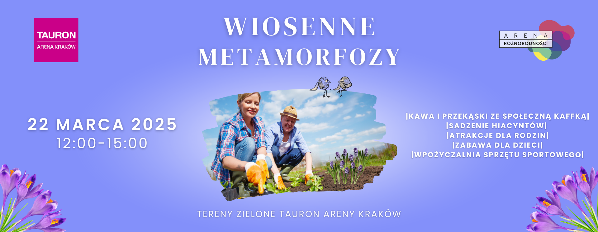 Wiosna to czas odnowy i przemian − metamorfoz, dlatego TAURON Arena Kraków i Społeczna Kaffka zapraszają mieszkanki i mieszkańców Krakowa do wspólnego świętowania początku tej wyjątkowej pory roku i Światowego Dnia Osób z Zespołem Downa. Wiosenne Metamorfozy odbędą się 22 marca na terenach zielonych przy TAURON Arenie Kraków, w godz. 12.00-15.00. To doskonała okazja, aby spędzić pierwszą wiosenną sobotę na świeżym powietrzu, biorąc udział w ciekawych aktywnościach, włączając się w promowanie różnorodności i wspierając działalność kawiarni społecznej.